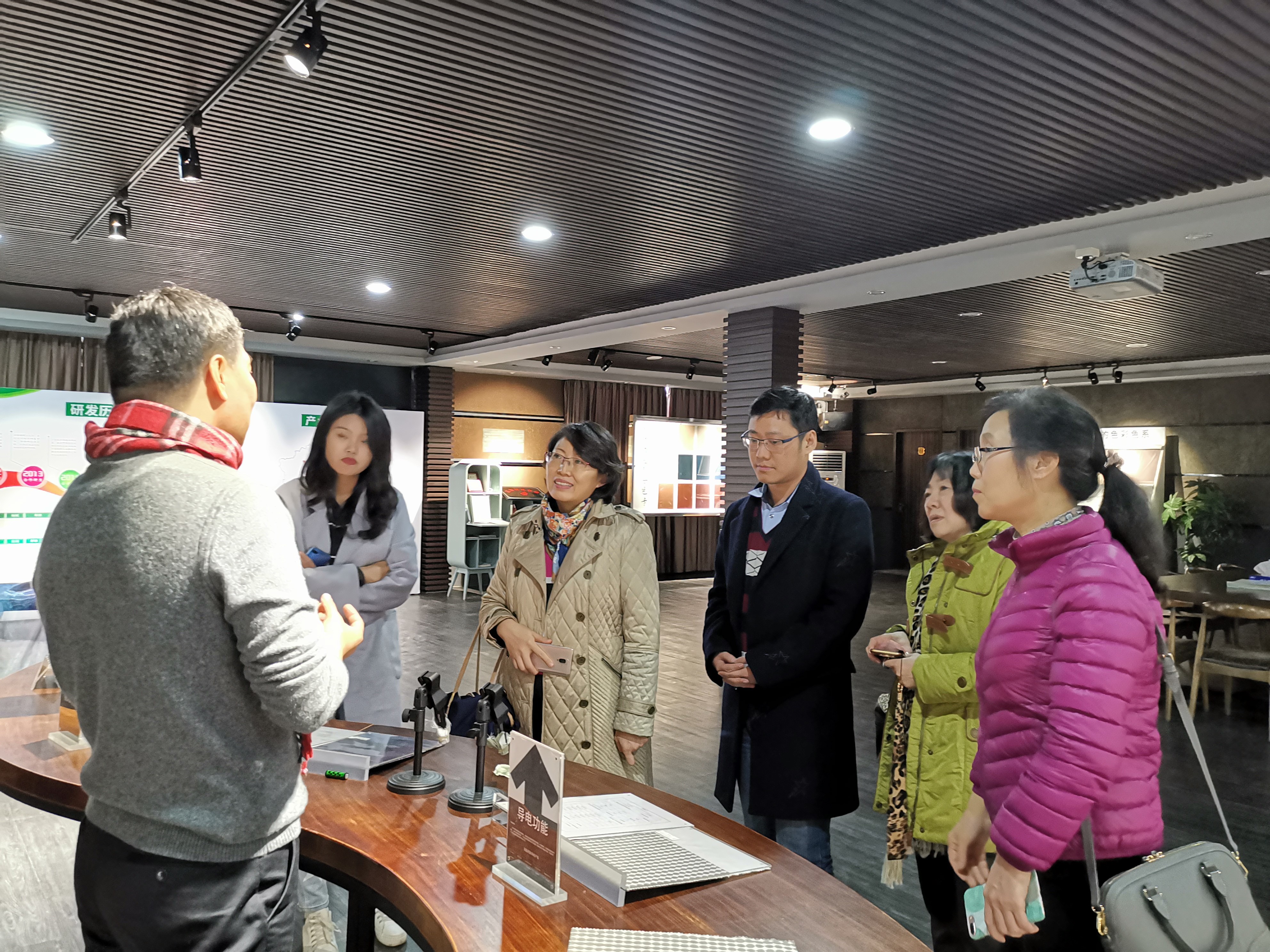虽为周末,公司余荣沾董事长热情接待,从色彩夺目、功能时尚的新产品到新工艺、新设备,余总亲自陪同参观、演示,讲述他远赴海外、回乡创业和多年执着的纺织印染新技术研发历程。座谈交流环节,余总介绍身边的两位年轻人都是名校海归博士,对新技术研发和产业化拓展起到了重要作用,随着企业的技术进步,也有高层次科研人员愿意来中小城市潜心研发了。