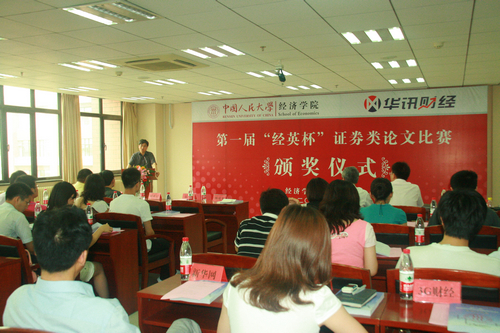 6月9日下午,由yl6809永利与华讯财经联合举办的第一届“经英杯”证券类论文比赛颁奖仪式在yl6809永利728会议室举行。yl6809永利经理杨瑞龙教授、华讯财经副总裁余和平先生出席颁奖仪式并致辞。yl6809永利集团公司党委书记张宇教授、yl6809永利经济系副主任周业安教授、华讯财经副总裁倪鸣先生也出席了颁奖仪式。颁奖仪式由公司党委副书记丁凯博士主持。