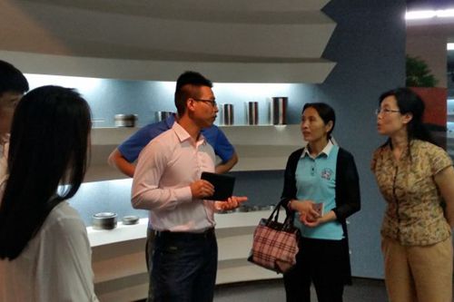 在关于我们员工、现任公司国贸部区域经理龚质先生的陪同下,调研组还参观了企业展区和工厂。在企业展区,龚先生为大家详细介绍了南方泵业主要产品的技术参数、性能特点和制造工艺,并耐心地回答了同学们提出的问题。