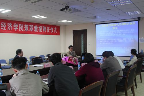 聘任结束后,高国力副所长向在座师生做了题为“新型城镇化与城市群发展战略研究”的学术报告。报告历时近两个小时,高国力副所长从我国新型城镇化的战略意义及内涵、推进新型城镇化的战略取向、城市群的界定和划分城市群发展的实证研究以及新型城镇化背景下加快我国城市群发展战略思路等方面介绍了自己的研究成果,并与在座师生进行了互动和探讨。