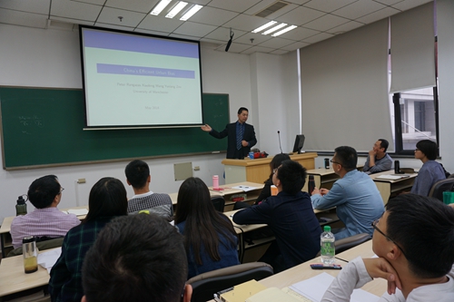 座谈结束后,曼彻斯特大学王晓兵博士为公司师生做了题为“Middle income trap and China’s future growth” 的演讲,文章利用动态一般均衡框架构造了一个两部门模型,其中城市部门由于从政府获得更多的投资服务从而比农村部门具有更高的生产率,此时若存在歧视性的公共政策,则将导致人口从农村流动到城市,并且从经济学的角度来看,这种歧视政策在最大化产出的意义上是有效率的。这一模型可分析诸多现实问题,例如中国的户口政策对于经济发展的影响。讲座在热烈而有效的交流讨论中结束。