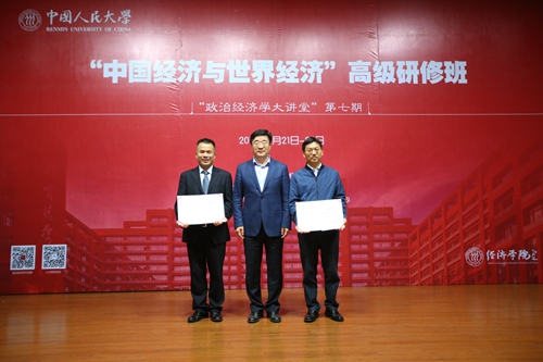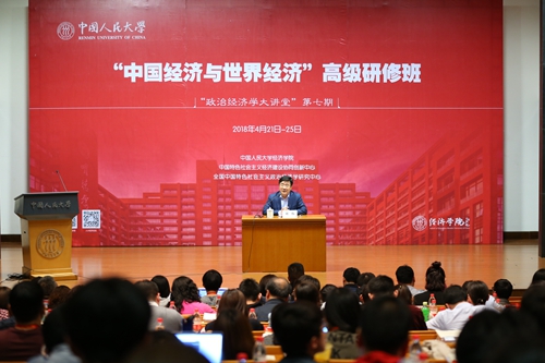 2018年4月21日下午,“中国经济与世界经济”高级研修班开班仪式在yl6809永利集团国学馆116报告厅举办。本次研修班为“政治经济学大讲堂”第七期,由yl6809永利主办,中国特色社会主义经济建设协同创新中心和全国中国特色社会主义政治经济学研究中心协办,持续时间4月21日到4月25日,共设10讲,来自各级政府机关、中央党校及各地方党校、各高校等企事业单位的百余名正式学员参加。本期高级研修班以“中国经济与世界经济”为主题,围绕新时代中国经济与世界经济及其关系问题进行深入研讨,有利于推进新时代中国特色社会主义经济与世界经济及其相互关系的深入研究,推动新时代中国特色社会主义政治经济学的进一步创新发展。