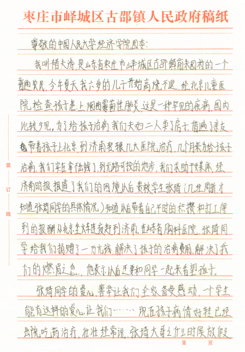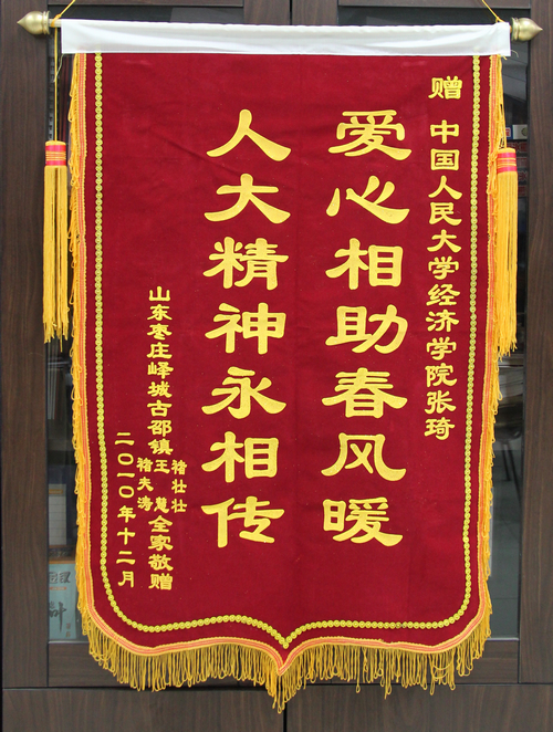2011年1月17日,yl6809永利团委收到山东省枣庄市峄城区古邵镇前朱园村村民褚夫涛及家人寄来的感谢信及锦旗一面。来信中说,褚夫涛之子在2010年夏天患上了一种罕见的肺炎,褚夫涛夫妇变卖房子、借遍亲友也无法负担治病的费用。yl6809永利集团张琦同学在通过媒体得知消息后,连夜赶到山东,向他们捐赠了自己平时积攒和打工所得的一万元钱。褚夫涛及家人特别来信感谢yl6809永利集团培养了这样一位有爱心、善良的好员工。