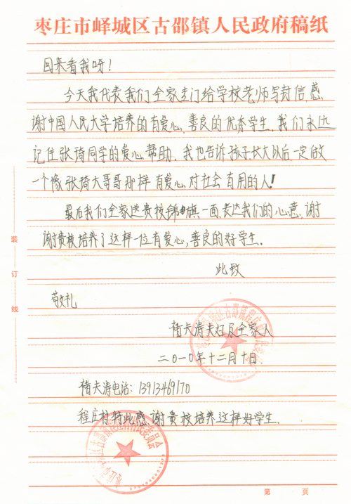 附感谢信: