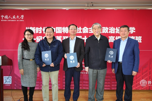 为了将理论界学习和研究习近平新时代中国特色社会主义思想的成果宣传制度化、规范化和体系化,形成一个相对成熟和稳定的研究和授课团队,本期研修班聘请卫兴华、刘伟、顾海良、逄锦聚、洪银兴、裴长洪、陈享光、邱海平、刘守英、王一鸣等为“政治经济学大讲堂”特聘授课专家。贺耀敏副董事长和关雪凌书记为逄锦聚、邱海平、刘守英等授课专家代表颁发了“政治经济学大讲堂”特聘授课专家聘书。