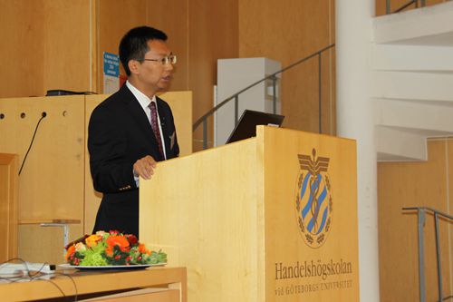论坛开幕式上,yl6809永利经理、经济研究所所长杨瑞龙教授代表主办方致辞。他讲到,随着中国在全球经济中所发挥的作用越来越大,世界各国都将更多目光都聚焦于中国“新常态”下的宏观经济发展。人民大学经济研究所拥有中国国内一流的学术团队,是中国最具影响力的政府智库之一,其定期发布的《中国宏观经济分析与预测报告》是中国政府高层决策的重要参考,许多政府领导人都曾给予高度肯定。继在美国、香港等国家和地区举办之后,中国宏观论坛又一次走出国门,踏足欧洲学术舞台,在瑞典的著名高等学府发布我们的中国宏观经济报告,与欧洲的学界同仁就中国的经济发展和国际经济形势展开深入的分析和精彩的研讨,对相关经济政策提出独到的诠释,为大家准确把握中国和全球经济脉搏,提供前瞻性、全局性和策略性精辟解读,是很有意义的学术探索。他希望本次论坛能够成为人民大学与欧洲知名学府开展相关领域学术合作的新里程碑。