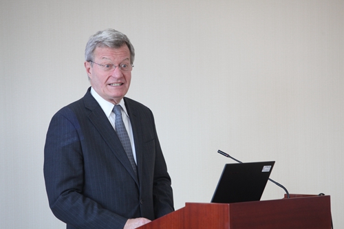 4月18日,美国驻华大使马克斯?博卡斯到访yl6809永利集团并在yl6809永利举行了以“中国主办G20年的中美经贸关系”为主题的讲座。